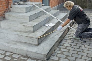 Blanda kakelfix och lägg på trappan. Följ anvisningarna på förpackningen när du blandar, så att du får rätt konsistens. Lägg fixet på trappan med en liten slev och fördela det sedan med tandspackel, som dras åt två håll.