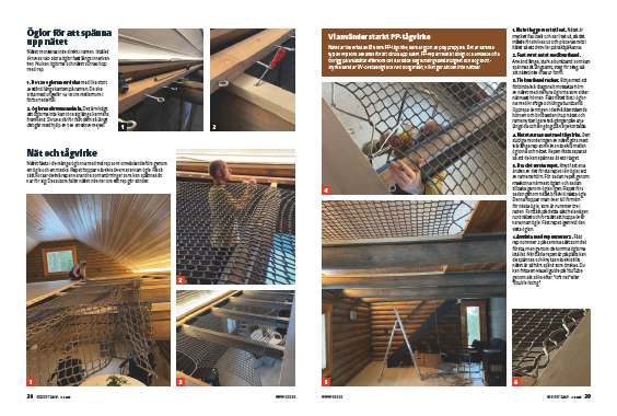 Nätet läggs först ut löst. Nätet är mycket flexibelt och ser litet ut, så det måste först vikas ut och placeras mitt i hålet så att det vilar på takbjälkarna.