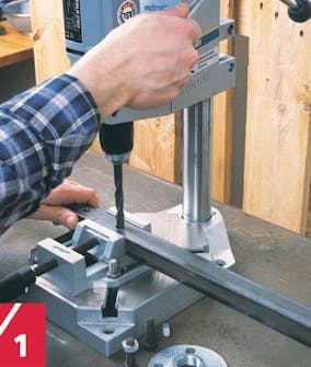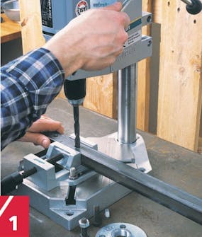 För att kunna skruva fast flänsen på röret kan det vara praktiskt med ett handtag. Gör detta av t.ex. en u-järn. Borra hål i järnet för skruvar som kan stickas ner i flänsen.