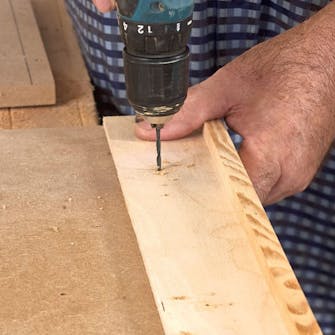 Förborra med ett 3,5 mm-borr genom uppritningarna i botten och förbered för att försänka skruvarna så att skåpet kan fogas enkelt och friktionsfritt. Det bör inte vara mer än 20 cm avstånd mellan hålen.