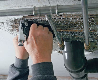 Bocka, vik och forma hönsnätet så att det kan pressas upp i hålet i taket, där det ska hålla fast bruket. Väj ett riktigt finmaskigt nät och klipp lagom stora bitar med avbitare.