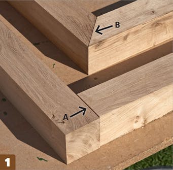 Såga till träet så att du kan tillverka benen och överliggaren. Du kan göra det enkelt med en vinkelrät fog A eller en gerad fog B, som är lite svårare. Såga träet på kap- och geringssåg så blir delarna exakta.