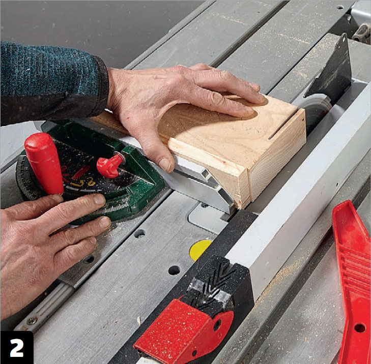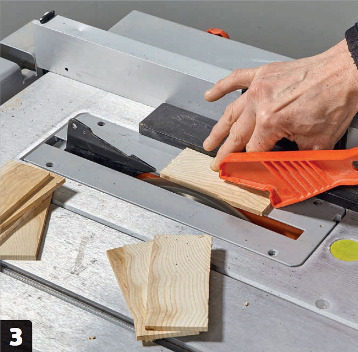 Kapa bitarna i 6 mm tjocka skivor. Det är inte alla sågar som kan ställas in så tunt. I så fall läggs en distans mellan träet och anhållet och de 6 mm mäts från distansen.