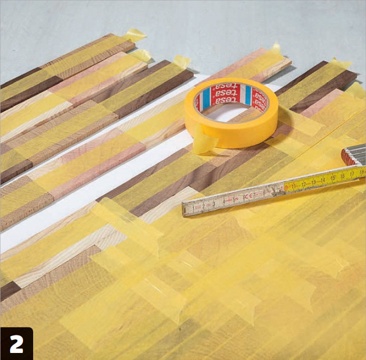 När du har ritat upp bordsskivans form på en bit papper i skala 1:1 och klippt ut mallen, läggs stavarna så att de helt täcker mallen.