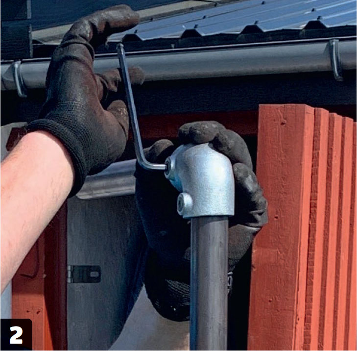 Istället för rör och gängade kopplingar använder vi ett system som kallas Kee Clamp rörkopplingar. De monteras med en insexsnyckel. Samtidigt är kopplingarna förhållandevis flexibla då man kan justera rören några millimeter vid behov, innan de fixeras.