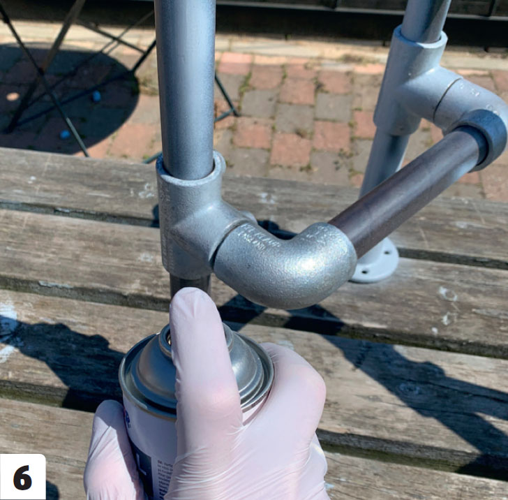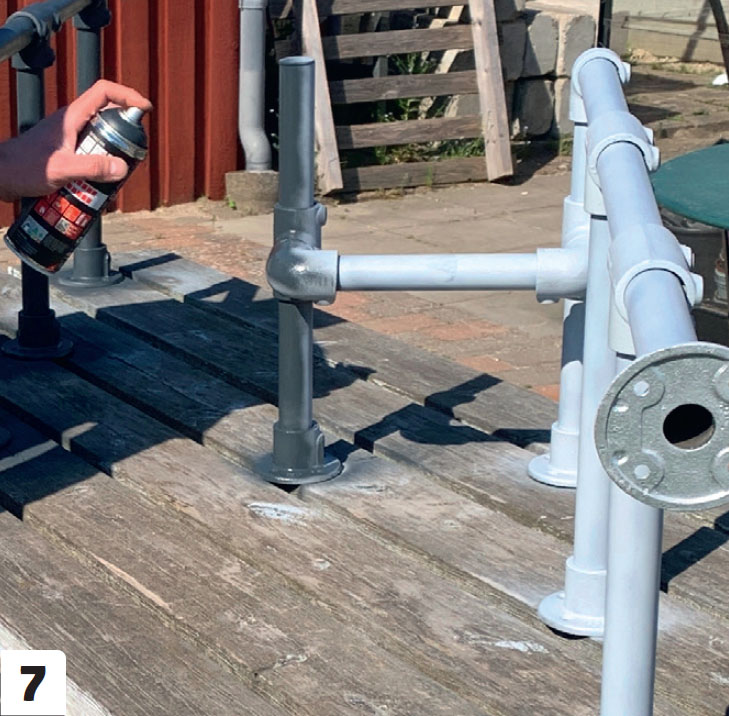 Alla delar ska sedan målas med grundfärg och en slutfärg. Sprayfärg ger bäst resultat.