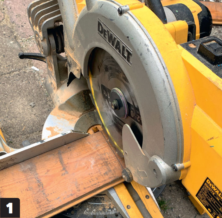 Vi sågar till brädorna. Vi har valt att hyllplanen ska ligga jäms med utsidan av gaveln. Du kan också låta dem sticka ut lite längre. Allt efter tycke och smak.