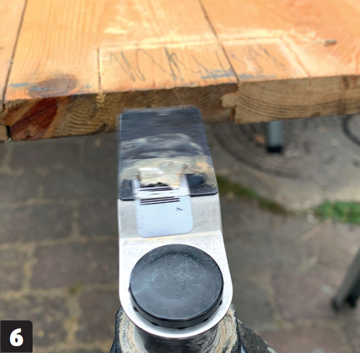 Mät tjockleken på dina beslag. Här är det 6 mm. Det är så mycket som vi måste såga bort om en liten stund.