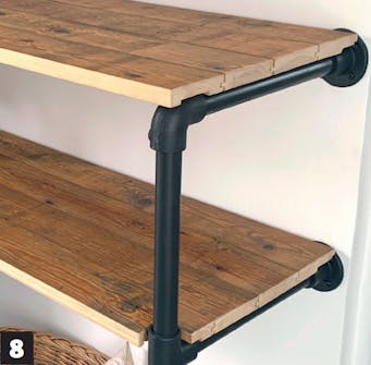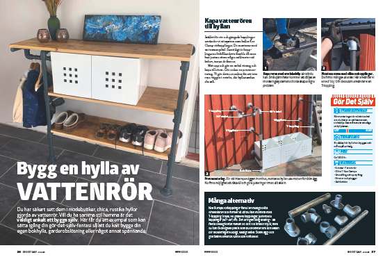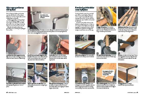 Rörmonteringen är relativt enkel om du klarar av att hantera en vinkelslip. Det svåraste är att såga ut hyllplanen.