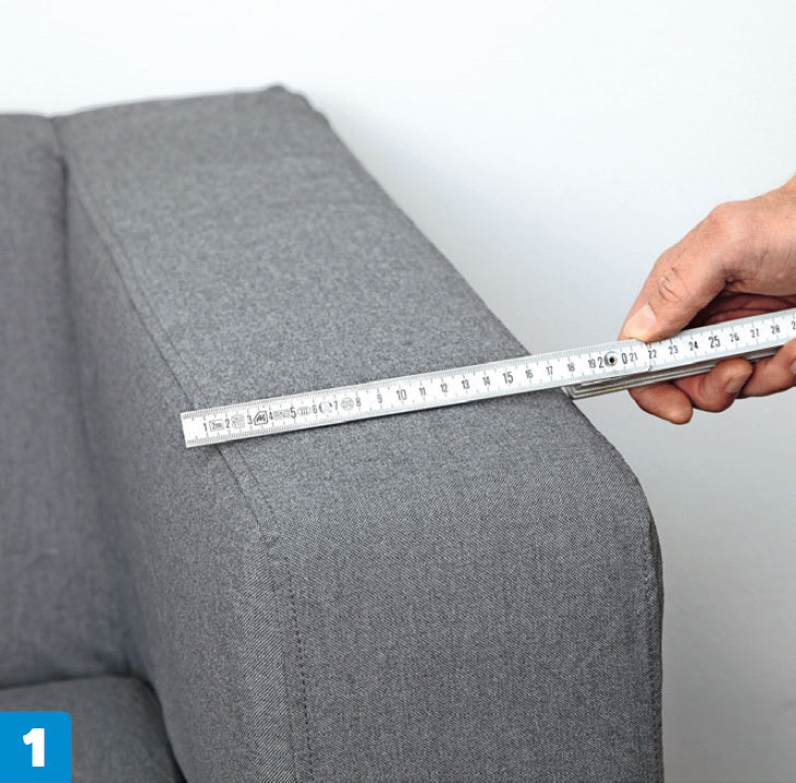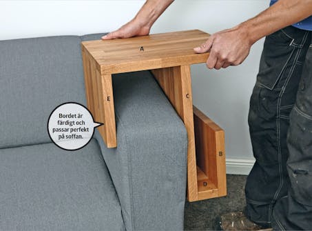 Mät bredden på soffans armstöd. Du kan även justera, hur mycket plats det ska vara på bordet, genom att göra det bredare.