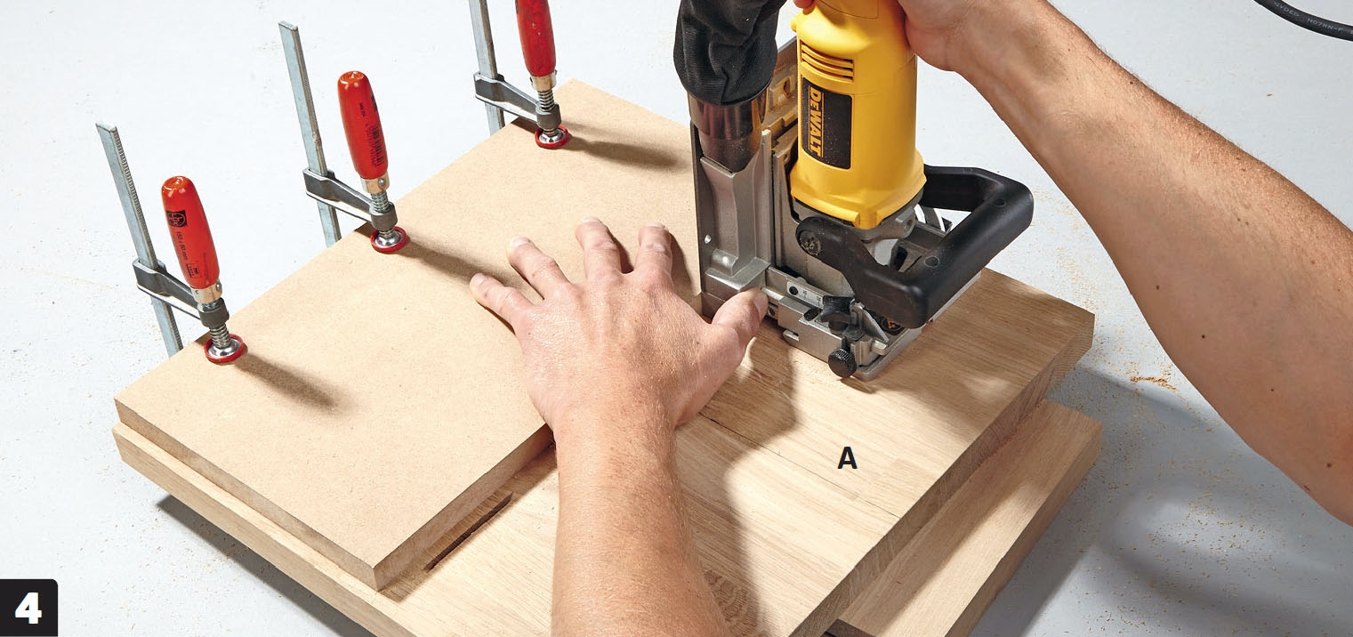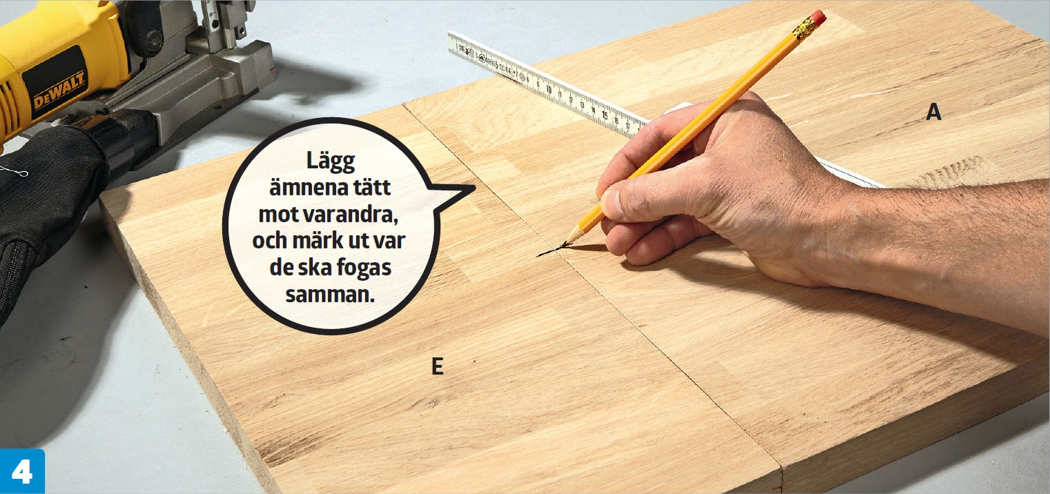 Det är viktigt att underlaget är stabilt och helt plant när du fräser ut för lamellfogningarna. De ska nämligen vara millimeterprecisa.