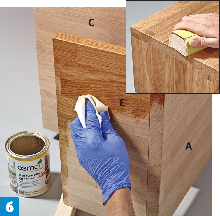 Bordet oljas in. Överflödig olja torkas av med en trasa. Låt träet torka i 8-10 timmar. Mellanslipa, och olja eventuellt en gång till.