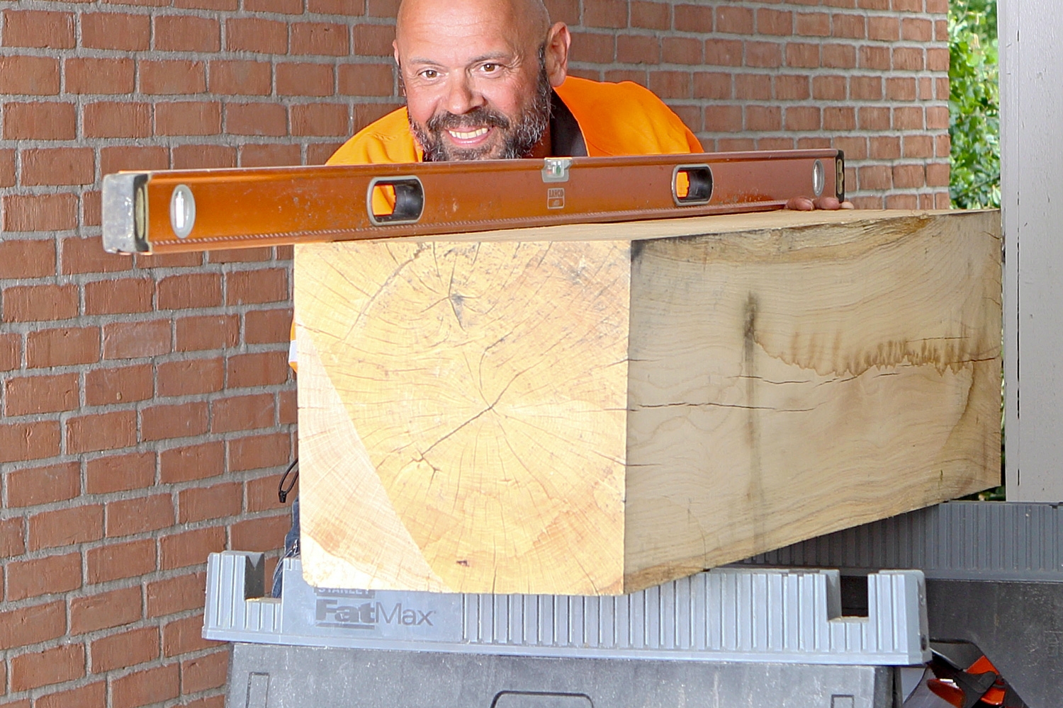 1. Kontrollera timret från ojämnheter och skavanker, så du kan få en överblick över hur det ska hyvlas. Det gör du genom att lägga ett långt vattenpass ovanpå virket, så du tydligt kan se hur det formar sig.