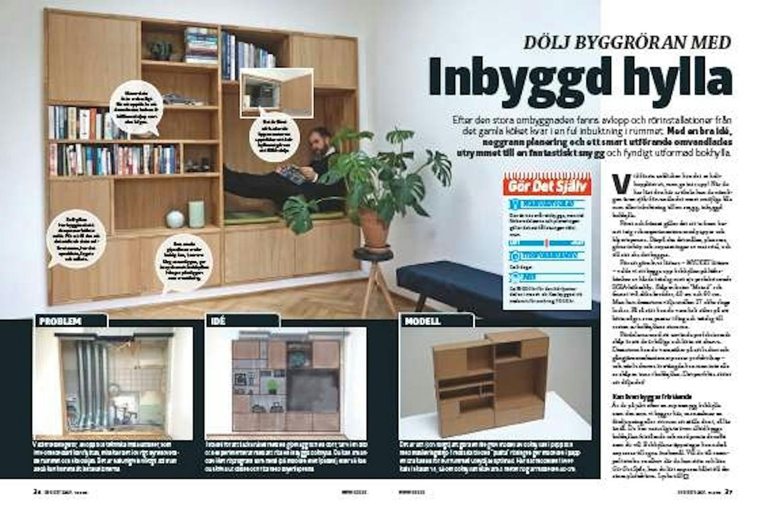 Det är viktigt att du snabbt och lätt kan komma åt installationerna bakom bokhyllan. Det gäller därför att anpassa baksidans skivor till skåpen så att de lätt kan tas ut igen om t.ex. golvvärmen försvinner eller reläet slår ifrån. Men det gäller samtidigt att utnyttja den plats som finns kvar i skåpen, så att du fortfarande kan använda dem till förvaring. Här visar vi hur du skapar en bra lösning.