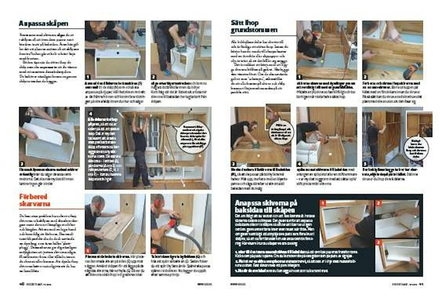 Ett bra tips när du sätter ihop de skåp som ska anpassas är att du väntar med att montera deras bakstycken. Du behöver nämligen kunna se genom skåpen medan du bygger.