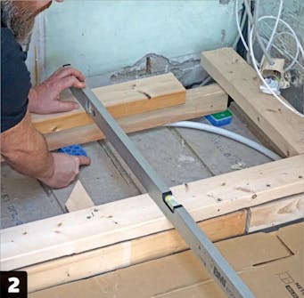 Bygg sockeln av 45 x 95 mm-reglar (Q) eller liknande. Finns det plats kan du överväga att isolera mot ljud och värme. Reglarna skruvas ihop med lämpliga skruvar, t.ex. 3,5 x 60 mm.