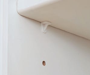 Nu har bokhyllan satts upp och alla passbitar är på plats. Det är en smaksak om du grundmålar före eller efter montering. Spackla efter grundmålning med träspackel och slipa. Kantlisten (F) utgör botten i den övre delen.