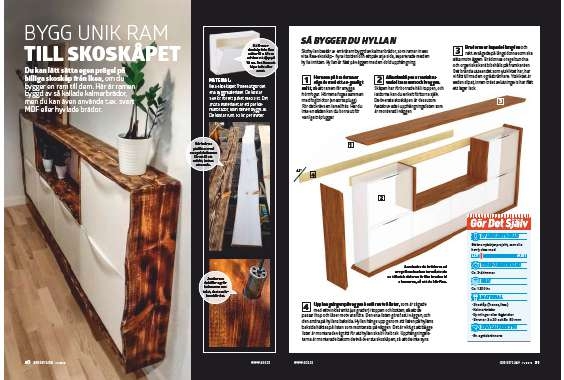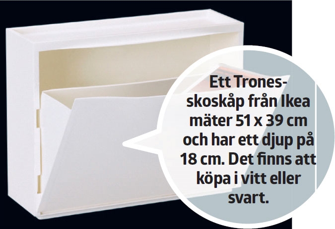 Alla skoskåpen är fastskruvade i trä ramen och i väggen. Skåpen har förborrade hål i toppen, och i sidorna kan du enkelt förborra själv. De översta sko skåpen är dessutom fastskruvade i upphängningslisten som är monterad i väggen.