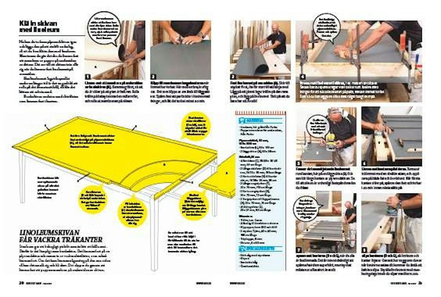 Bordsskivan är en kraftig plywoodskiva, som ska sågas till så att den har de önskade måtten och är vinkelrät.