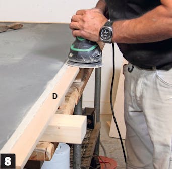 Limma fast ett membran på undersidan av bänkskivan (A). Dammsug först, så att du är säker på att ytan är helt ren. Rulla trälim på hela ytan med en målarroller, och rulla ut membranen på skivan.