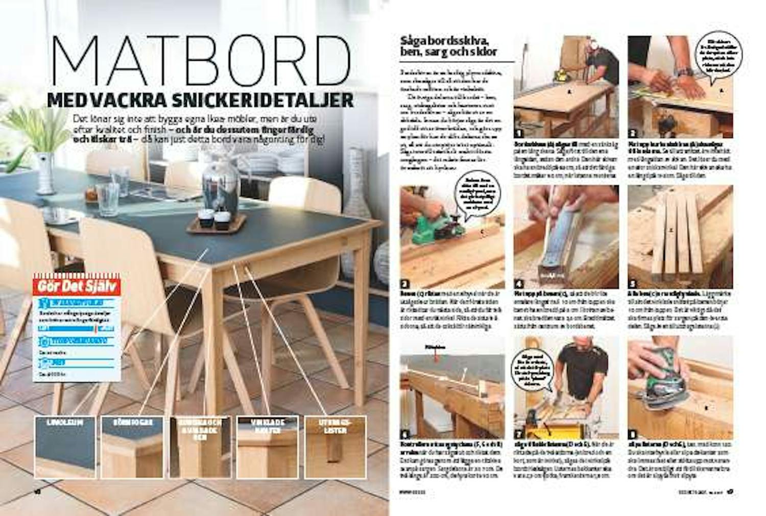 Såga bordsskiva, ben, sarg och sidor