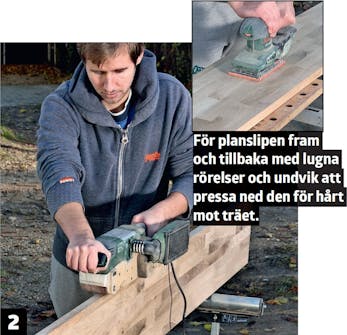 Slipa sågsnitten helt raka - eventuellt med hjälp av en lång remsa slippapper som spänns ut på ett bord. Du kan även använda en slipmus eller en planslip.