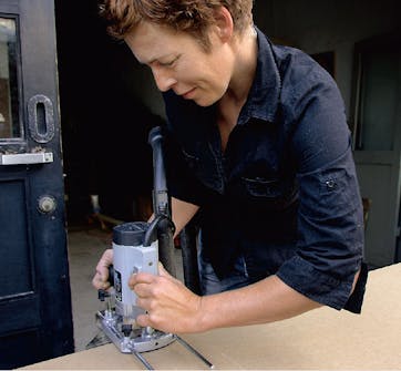 Runda av alla kanter med handöverfräs. Välj ett frässkaft som passar i storlek till skivorna tjocklek. Vi tog en 22 mm avrundningsfräs.