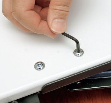 Dra åt alla skruvar med en insexnyckel. Dra åt hårt, men inte så hårt att skruvhuvdet gnager sig ner i träet