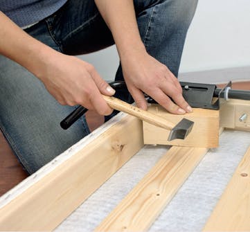Vikbenen ska monteras på klossar som fästs i trädelarna i madrassen för annars ”svävar” beslaget. Träklossen ska vara exakt så stor att beslaget ligger vågrätt.