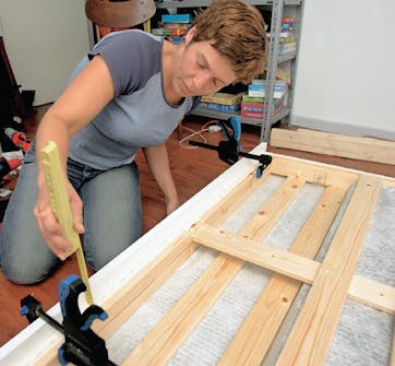 De runda kanterna är nästan nödvändiga när det gäller en säng. Inte nog med att det ser snyggt ut. De är sköna att ta på, och det är lättare att måla en rund kant än en skarp. Torka av skivorna med fuktig trasa innan du målar dem.