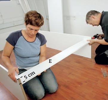 Är du noga när du mäter kan du beställa skivorna färdigsågade. Då ska du bara sätta ihop till ett skåp. Det kräver ingen särskild erfarenhet.