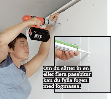 Om fronten är så stor att den inte kan sågas av en skiva gör du den av två mindre. Här använde vi två skivor med 70 cm bredd och en passbit som är 8 cm bred. Skarvarna fylldes med fogmassa.