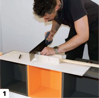 Läkten sågas till. En geringslåda är ett billigt och smart hjälpmedel när du ska såga till läkt och lister.