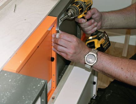 Skåpen placeras och skruvas ihop