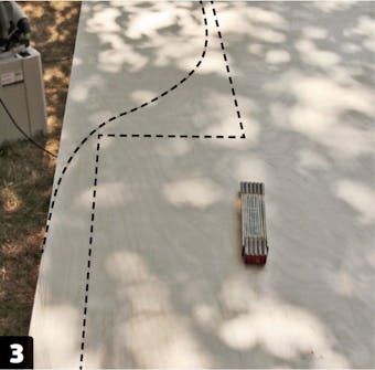 Rundningen ritas upp och sågas ut. På frihand ritar vi upp rundningen cirka 2 cm utanför markeringarna. Därefter sågas rundningen ut med en sticksåg.