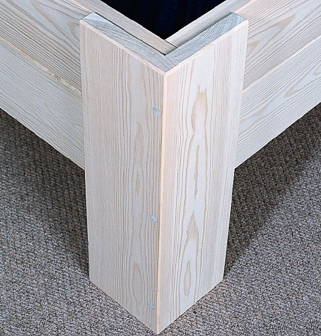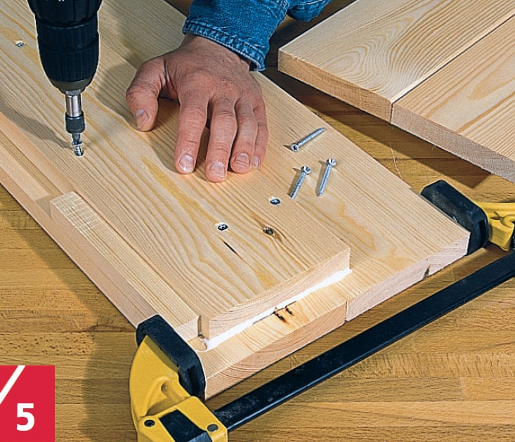 Lägg de korta vinklarna inuti de långa. Se till att de håller underkant. Stryk lim på vinklarna parvis och skruva sedan ihop. När limmet har torkat slipas alla kanter släta.