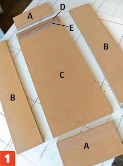 När du har såga till ovan-och bottenstycke, sidorna, luckan och listen ur MDF-skivan, ska delarna sättas samman.