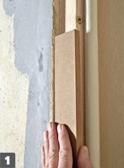 Hitta rätt tjocklek. Jacket döljs med en täckplatta av MDF på 12 mm. Plattan skruvas fast på lister på väggarna.