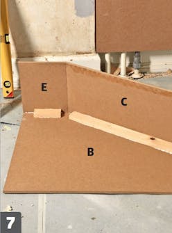 Formen på de angränsande golvlisterna har ritats upp på en bit papp.