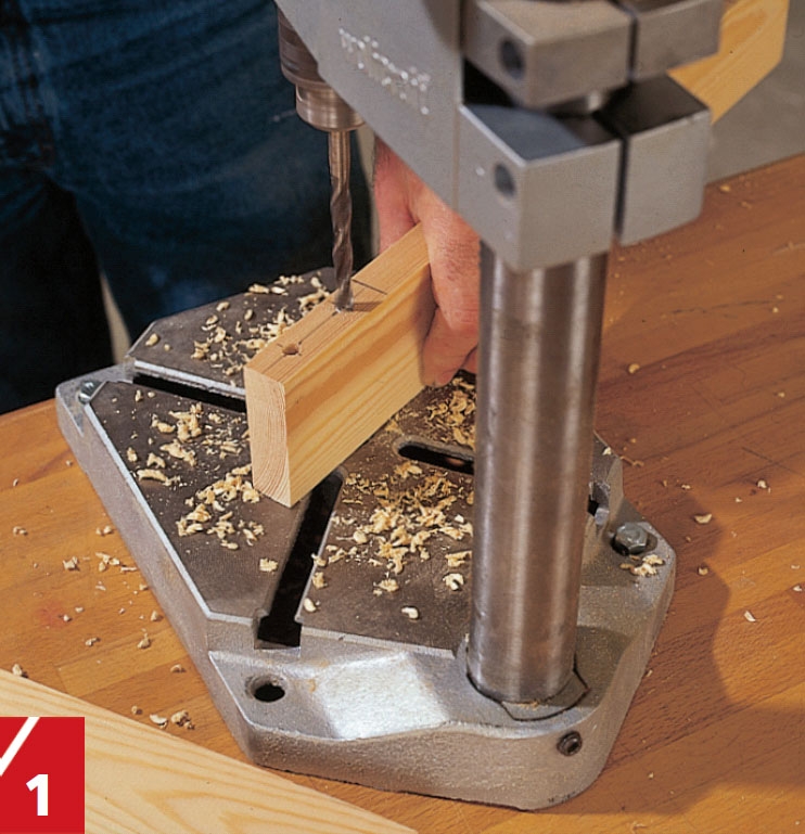 Innan du borrar skall du vara säker på att borret går in vinkelrätt. Markera med vinkelhake eller använd en mall, som du lägger under listen. Tejp fungerar som djupstopp på borret.