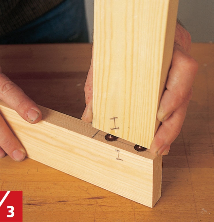 Använd pluggmarkörer för att få hålen i de vågräta listerna att passa ihop med dem i de lodräta. Sätt siffror eller bokstäver vid varje fog så att du vet vilka delar som passar ihop.