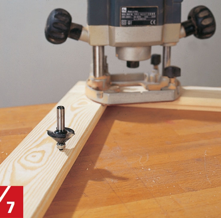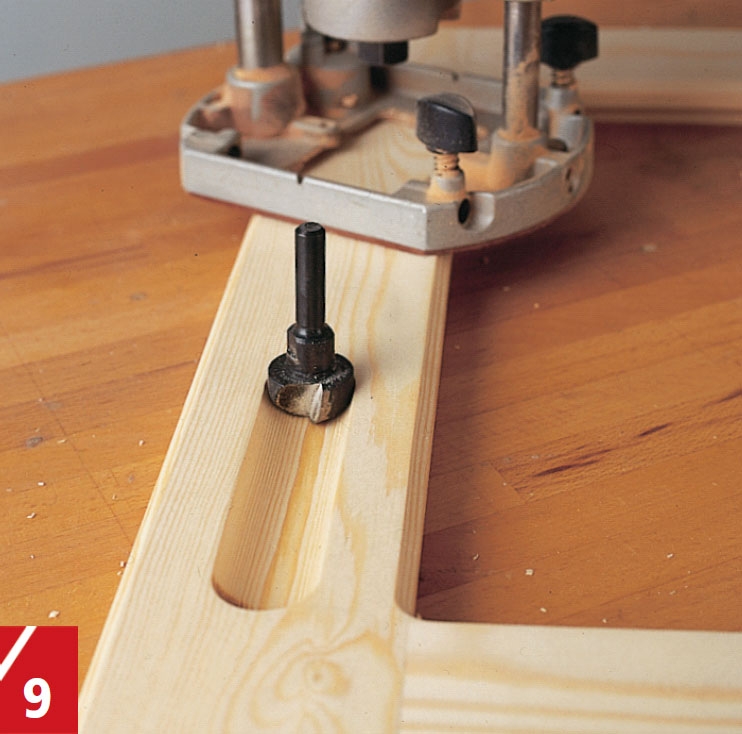 Speglarna läggs ner i ett fräst spår på baksidan av ramen. Falsjärnet i handöverfräsen har ställts in på 10 mm bredd och vi har här valt ett fräsdjup på 10 mm.