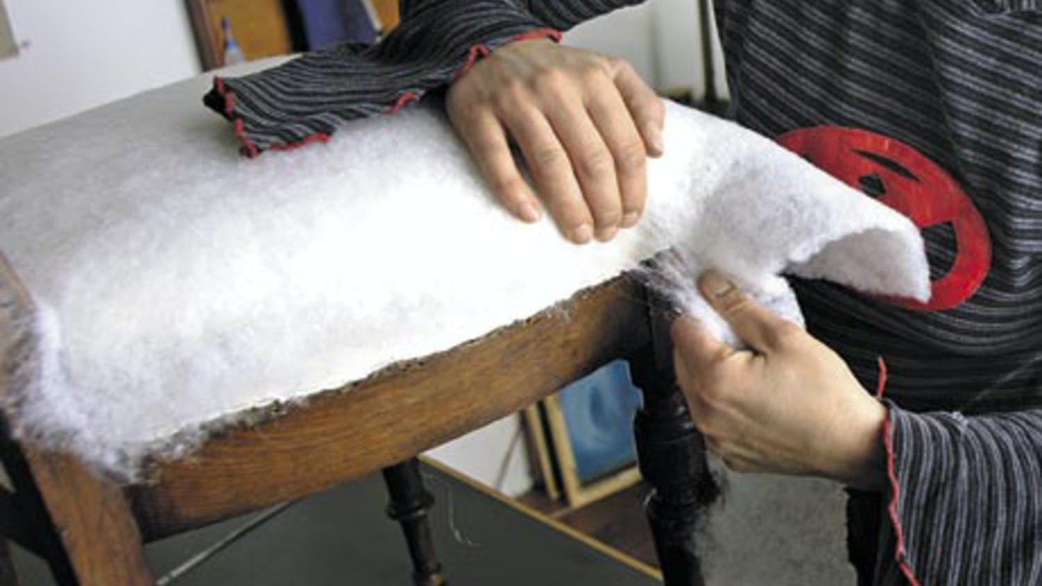 När en tapetserare klär en stol med skinn läggs skinnet i blöt i ljummet vatten. Skinnet sträcks medan det är vått för da är det smidigt och elastiskt, och fästs på stolen så att det sitter spänt. Skinnet får torka långsamt i rumstemperatur och då krymper det lite och sträcks hårt. Därmed minskas risken att det blir skrynkligt och att det bildas bubblor.