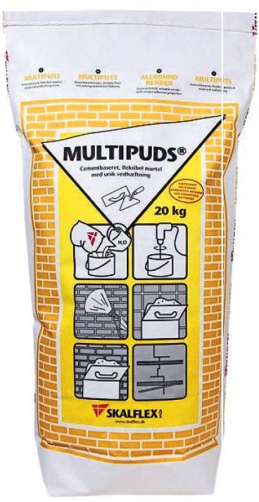 Innan natursten sätts upp på braskaminens vägg ska väggen putsas upp till en jämn yta. Först fylls fogarna i tegelväggen och därefter putsas väggen upp med två putsskikt. Vi rekommenderar multiputs för uppgiften, eftersom den har en otroligt bra vidhäftning på de flesta material.