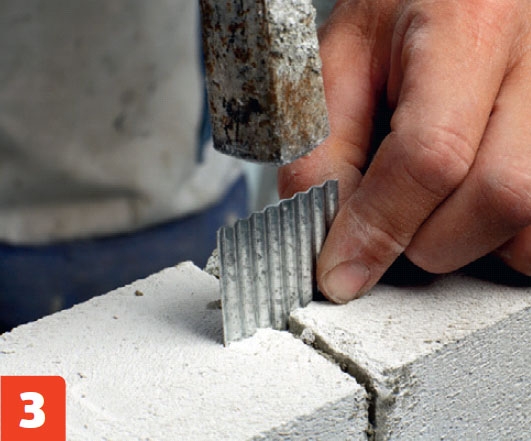 Slå i spikbleck med en ham - mare för att stärka skarvarna. Plattorna kan också fästas på väggen med vinkelbeslag.