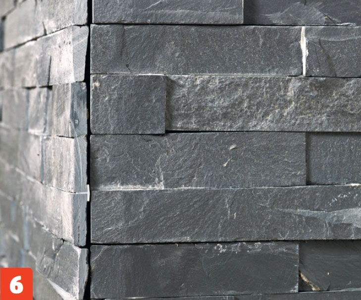 Låt stenarna på framsidan sticka ut lite över hörnet, så att de ligger i exakt linje med stenarna på den angränsande väggen. Det ger den snyggaste skarven.