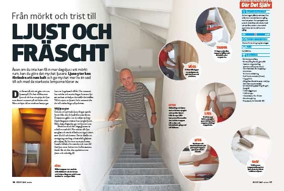 Vi sätter ett ljusband bakom trappräcket och utnyttjar en av LED-ljusets många nya möjligheter. Ljusbandet tar oerhört lite plats och kan klippas av till det mått man vill ha. Med bordscirkelsågen och ett smalt stämjärn gör man en skåra i trappräcket som passar till ljusbandet, så att det är helt dolt. Skåran kan också tillverkas med en handöverfräs.