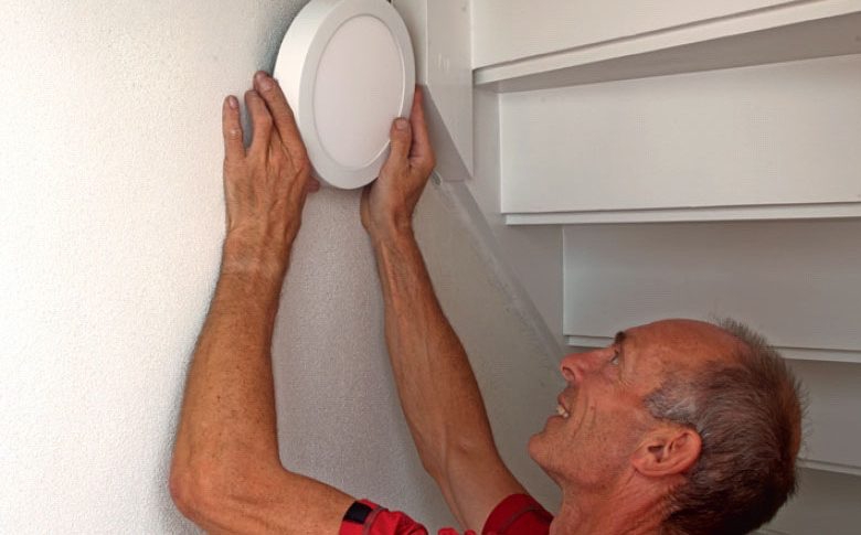 En ljusstark, platt och stilren LED-lampa ersätter den gamla, traditionella plastkupan med glödlampa. Lampan passar perfekt till det nya utseendet och den ger ett bra grundljus i hela trapprummet.