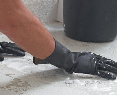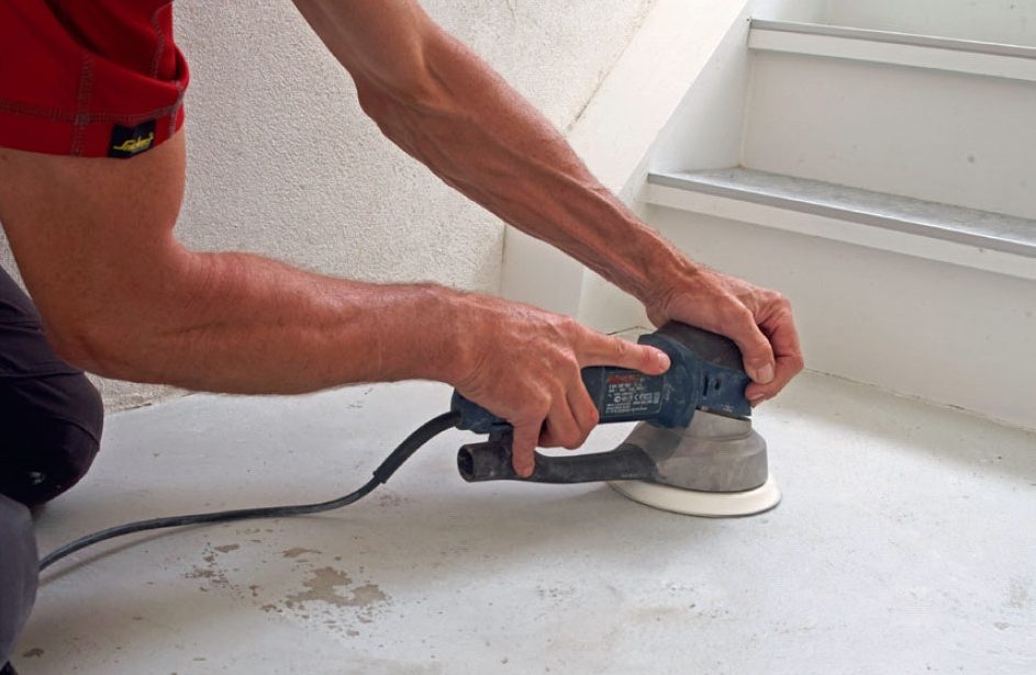Krapa och slipa bort lös färg på golvet. Se också till att slipa ned övergångarna i färgen så att du inte märker dem med fingrarna.