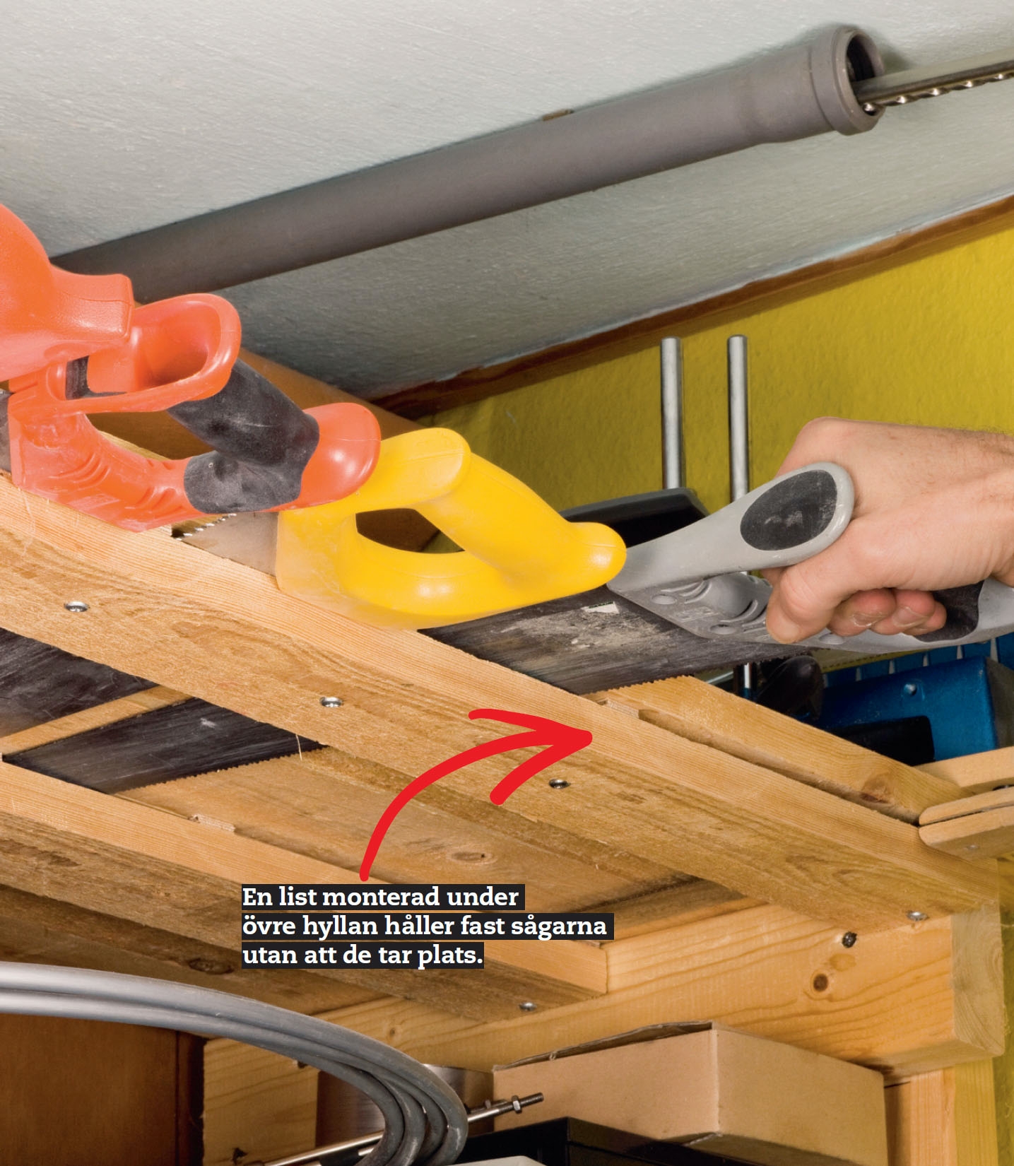 Du ska utnyttja utrymmen som du inte trodde fanns! Se här: fogsvansarna har placerats under den övre hyllan på ett ställe man normalt aldrig använder. En annan fördel är att risken för att man ska skära sig på sågtänderna är nästan obefi ntlig
